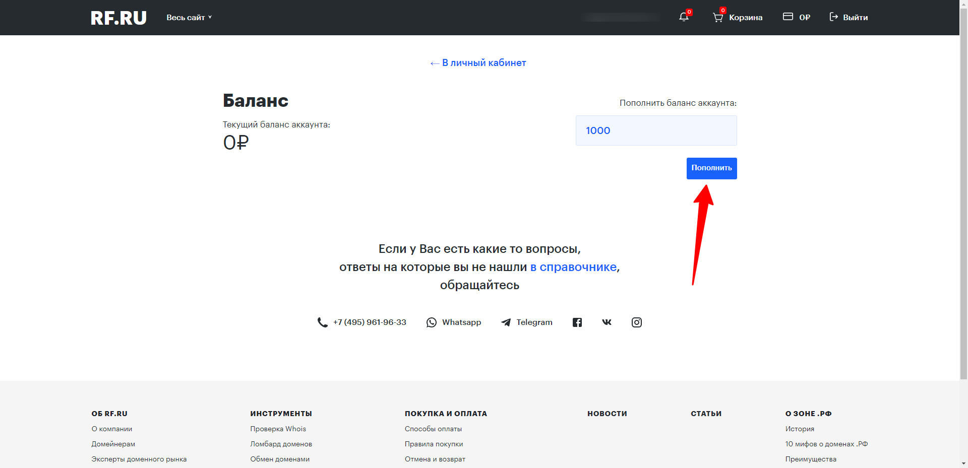 - После завершения процедуры оплаты вы будете перенаправлены обратно на сайт RF.RU и сможете использовать зачисленные на баланс денежные средства.