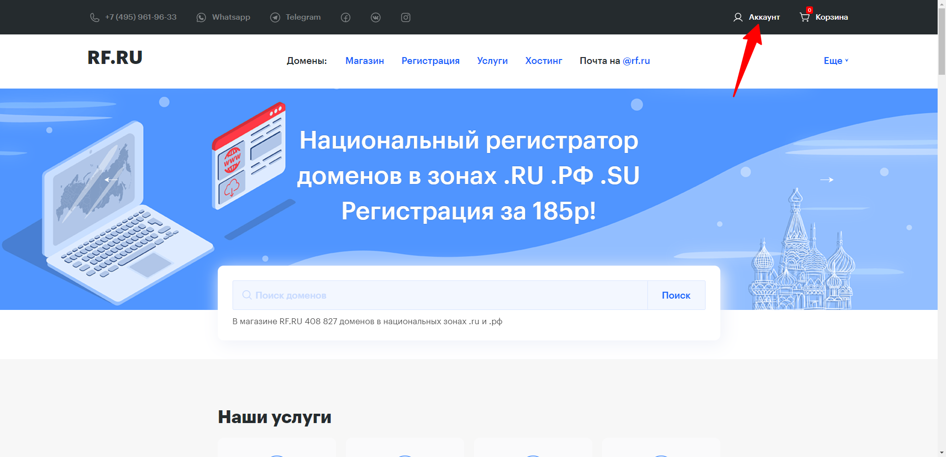 - На сайте RF.RU перейдите в ваш Аккаунт.