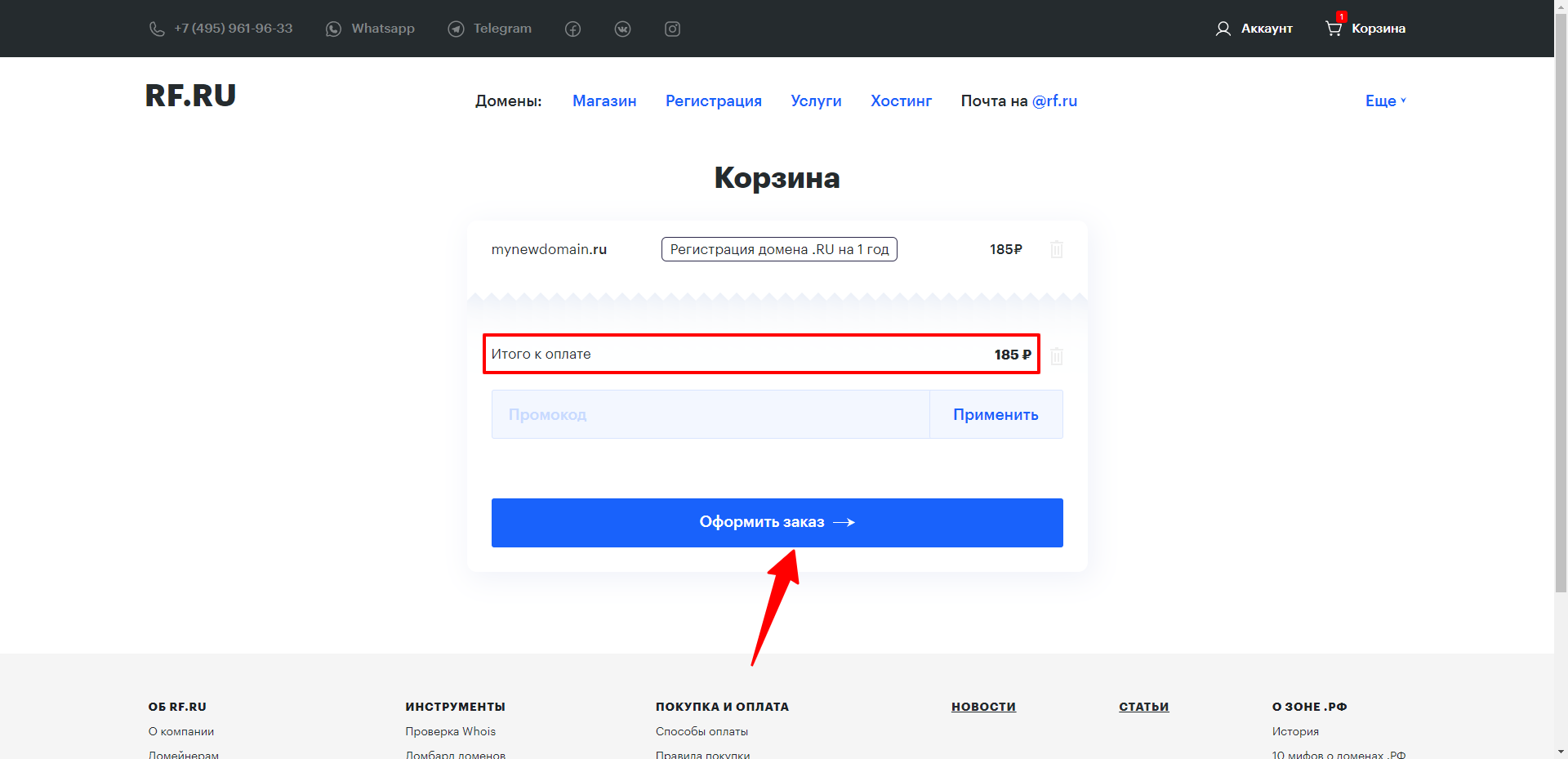 - Проверьте стоимость услуги в корзине и нажмите кнопку Оформить заказ.